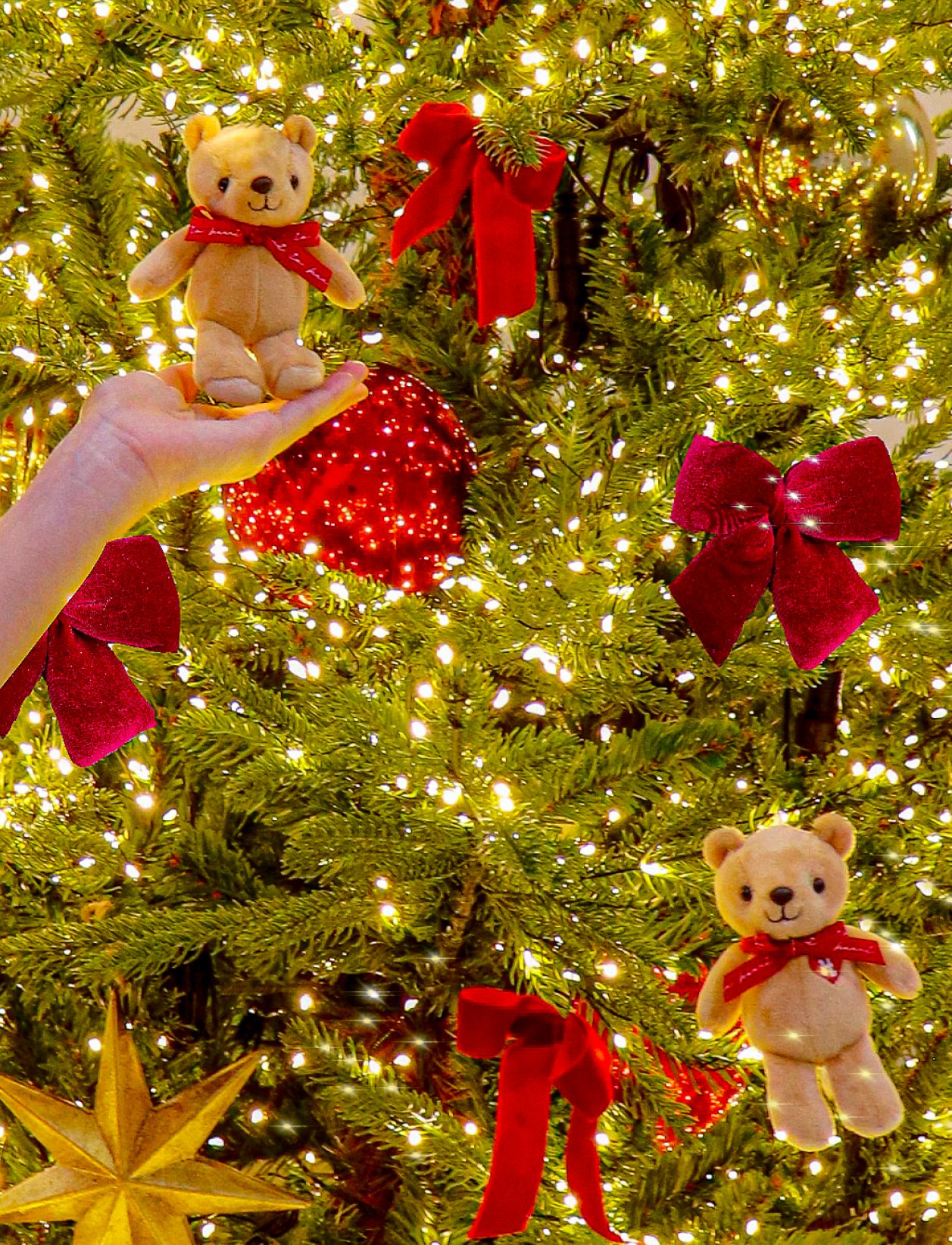 크리스마스 트리에 불빛을 밝히고