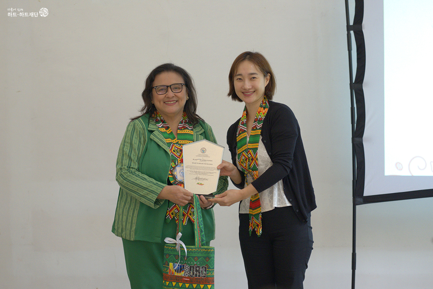 또한 이날 아브라 드 일로그 시장이 하트-하트재단에 감사장을 수여하여